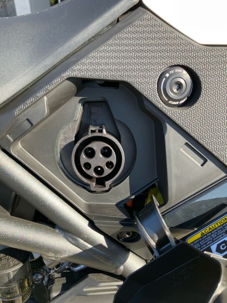 The Can-Am Origin has an industry-leading liquid-cooled battery and on-board charger for quick and efficient charging in almost any condition. It can charge from 20% to 80% in 50 minutes using a Level 2 charging station.